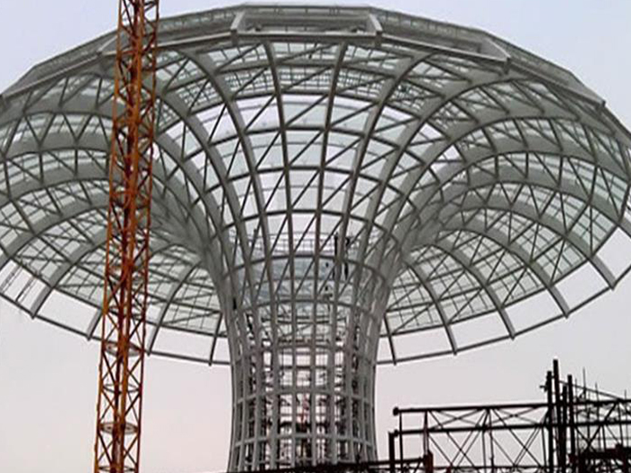 二、球形网架结构因其结构新颖,受力合理,自重轻、用钢量低等优点。如大型体育场馆球形亳州螺栓球网架、公共场馆球形网架、电厂亳州螺栓球网架、水泥工业球形网架、仓储物流球形网架、亳州干煤棚工业球形网架、亳州收费站亳州加油站球形网架、展览中心、影剧院、商场、航站楼、候车厅、工厂亳州车间、仓库、电视塔等球形螺栓球节点网架。国内球形网架结构主要分为:亳州焊接球节点网架及螺栓球节点网架两种。螺栓球节点网架其构件工厂内加工量较大,现场安装便捷,适用于现场工期紧,亳州施工条件、用电量受制约,网架形状复杂、亳州杆件定位困难的异形结构。螺栓球节点球形网架系统基本由亳州杆件、螺栓球、支撑支座等组成。按照节点形式可分为交叉亳州桁架体系、四角锥体系、三角锥体系等。支撑方式多为固定支座支撑。对于大面积、大跨度及有特殊受力或伸缩要求的网架结构可采用橡胶支座、滑移支座、球铰支座等支撑形式,以满足结构自身的受力稳定、均衡,便于内力释放等设计要求。